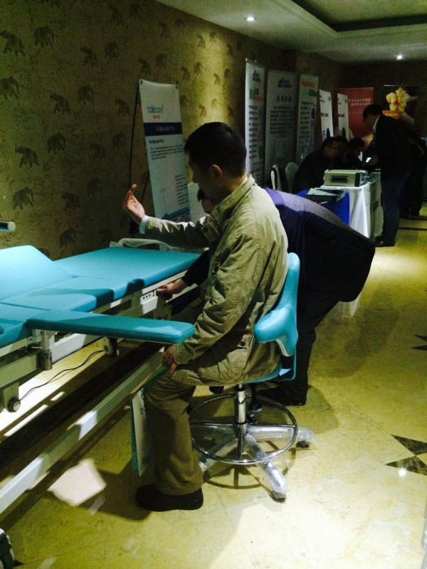 第二屆腫瘤微創(chuàng)、超聲介入學(xué)科發(fā)展及臨床應(yīng)用研討會(huì)(浙江杭州)于2014年11月7日~9日在浙江杭州第一世界大酒店舉行,泰樂(lè)康talecare全程贊助。新產(chǎn)品:電動(dòng)超聲介入“診療床”,得到廣大醫(yī)生主任的青睞和好評(píng)!圖一:會(huì)議現(xiàn)場(chǎng)圖二:會(huì)議現(xiàn)場(chǎng)圖三:泰樂(lè)康展位圖四:浙江陳家輝經(jīng)理在認(rèn)真給上海瑞金醫(yī)院王主任演示新產(chǎn)品電動(dòng)超聲介入“診療床”。圖五:王主任看產(chǎn)品彩頁(yè)中。。